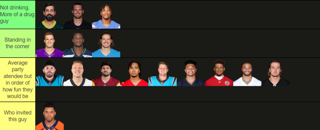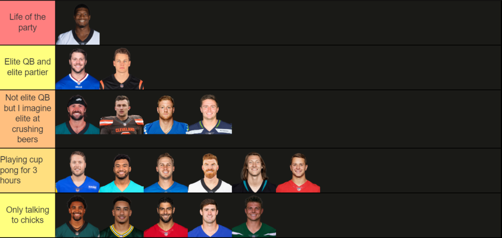 A new elite tier list, as I categorize Quarterbacks based on how they would act at a party.