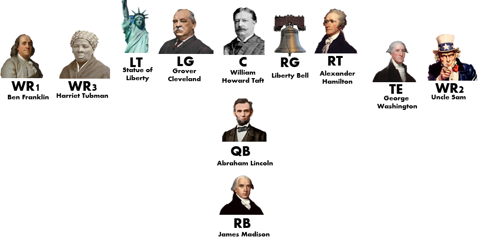 Regardless, United Takes of America is celebrating the holiday with a new football lineup compiled of significant figures in American history. Let’s get into it, starting with the offense.
