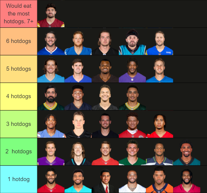 This is a tier list based on nothing except how many hot dogs I think each quarterback would enjoy at a barbeque.